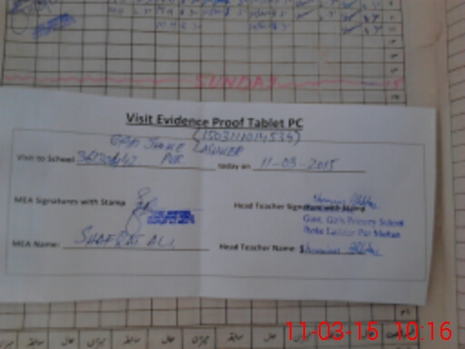 | Attendance Register | Head Teacher | MEA with School | Visit Proof |
