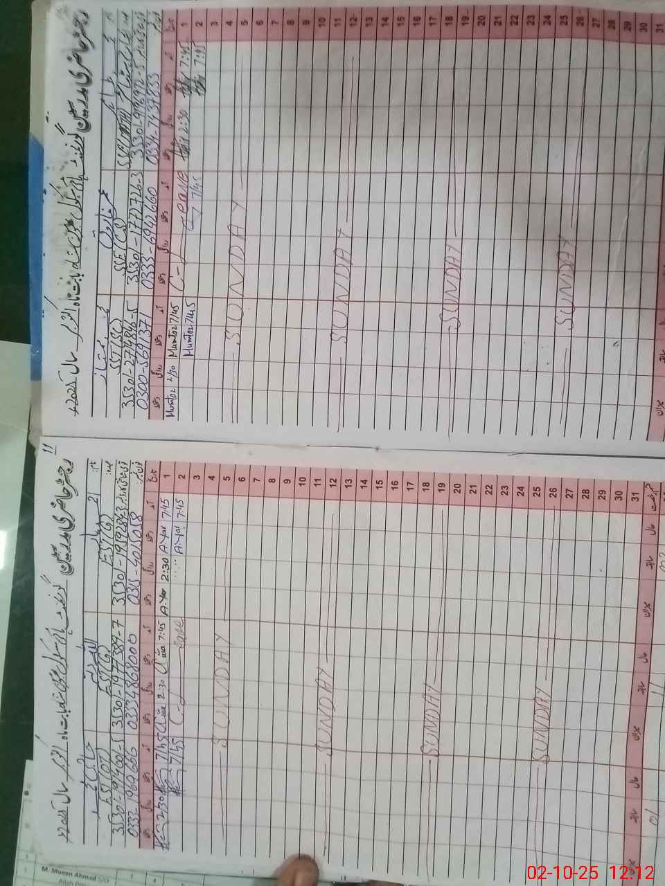 | CNIC | Full Name | Designation | R/C | Absence During Last Calender Month |