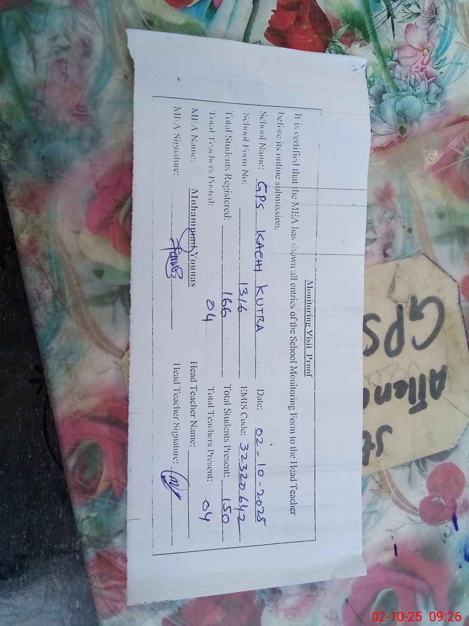 | EMIS Code: 32320642 | Name of School: GPS KACHI KUTRA | |||