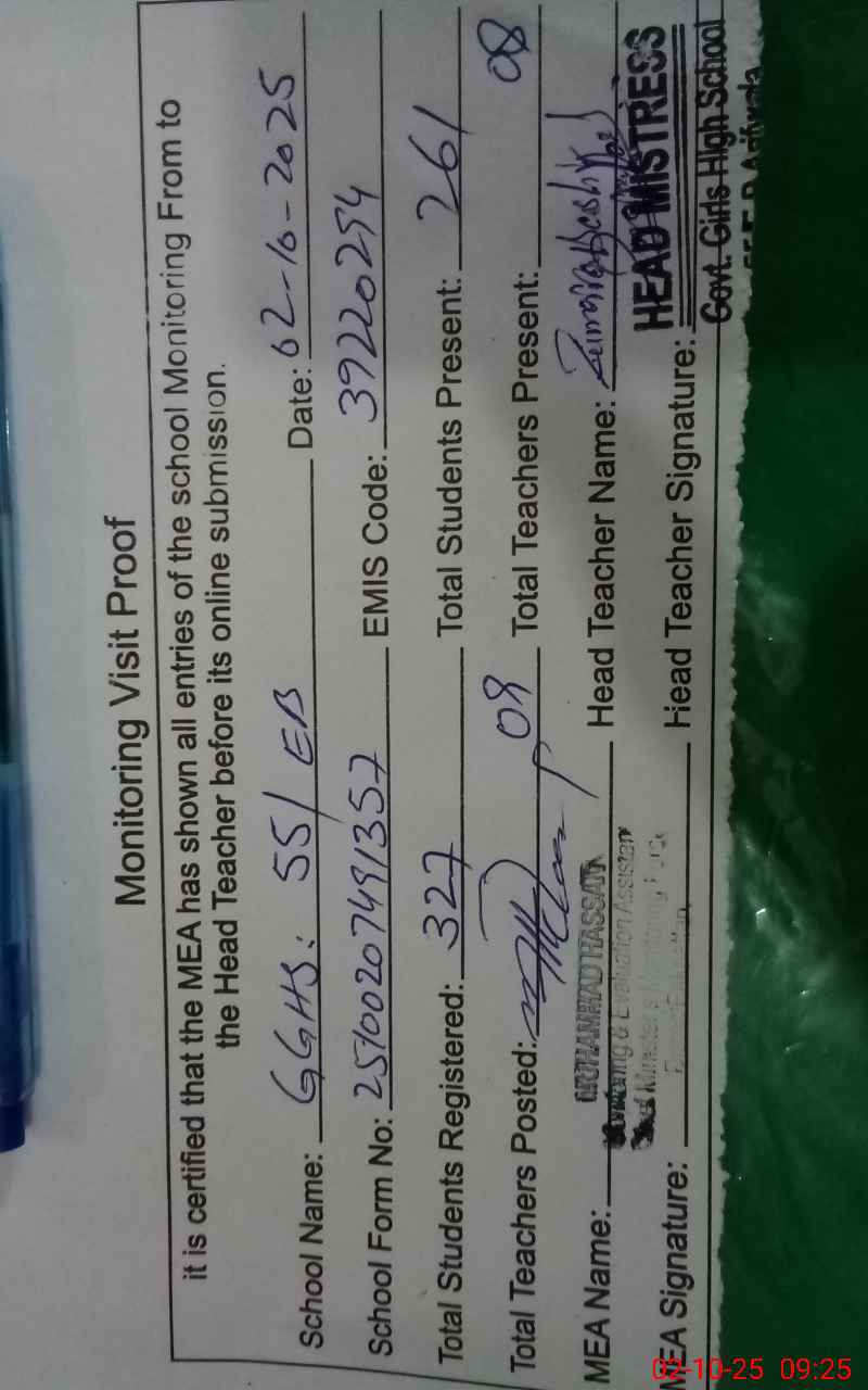 | EMIS Code: 39220294 | Name of School: GGHS 55 EB | |||