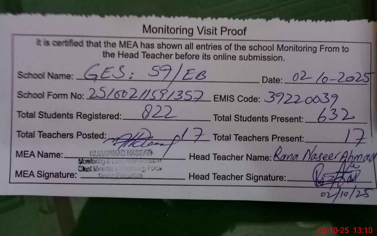 | EMIS Code: 39220039 | Name of School: GES CHAK NO. 59 EB | |||