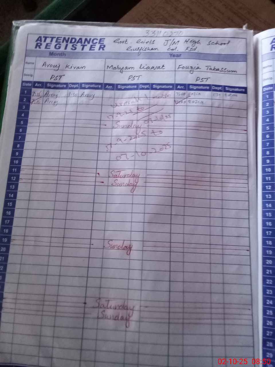 | 33**** | Sh**** Gu**** | SST | Regular | 0 | 0 | 0 | 0 | 0 | 0 | 0 | 0 | 0 | Exam Duty |