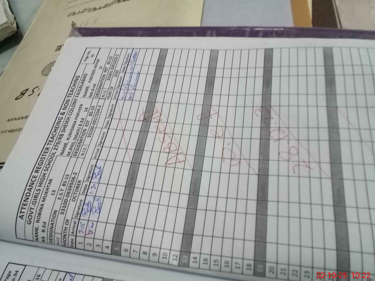 | 33**** | Ru**** Pa**** | 3 | 1 | 0 | 0 | 0 | 0 | 0 | 0 | 0 | 0 | 0 | Absent (Un-Authorized) |