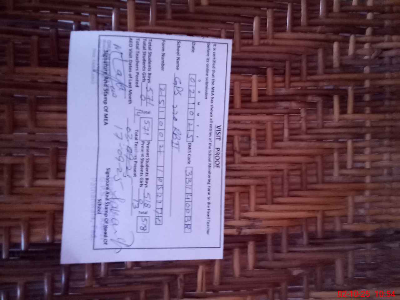 | Certified that this School was Inspected by the Undersigned MEA/DMO Today and the Information Stated Above is as Per Record. | |||||