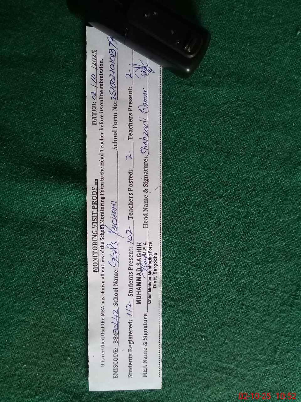 | Monitoring Date: 02-10-2025 | Start Time: 02-10-2025 10:10 AM | End Time: 02-10-2025 10:53 AM | Name of MEA: MU**** SA**** | |