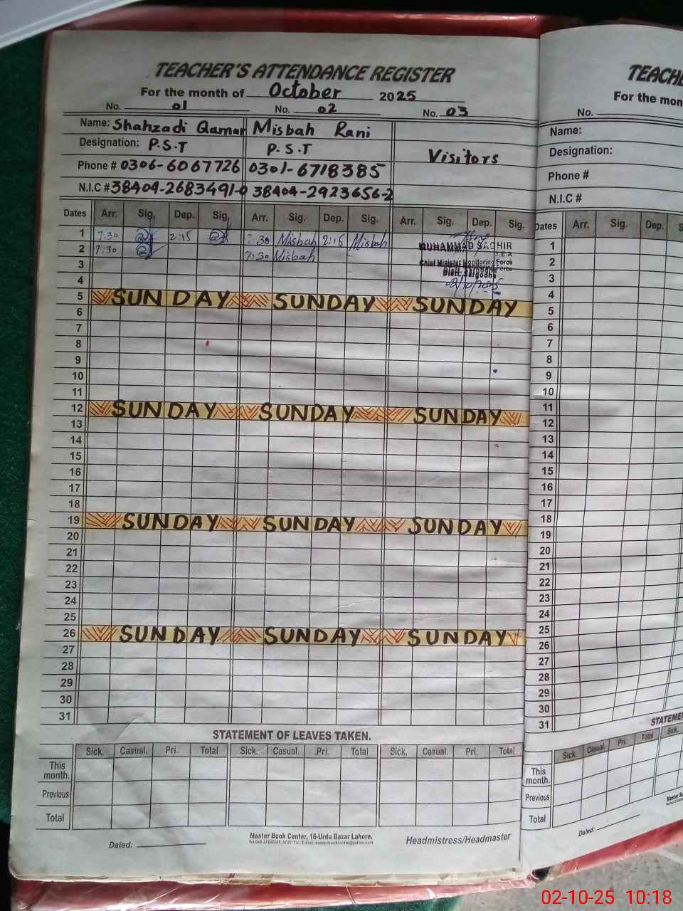 | Name: SH**** QA**** Designation: (School Headmaster's/Headmistress's) PST Phone/Cell Number: 03**** |