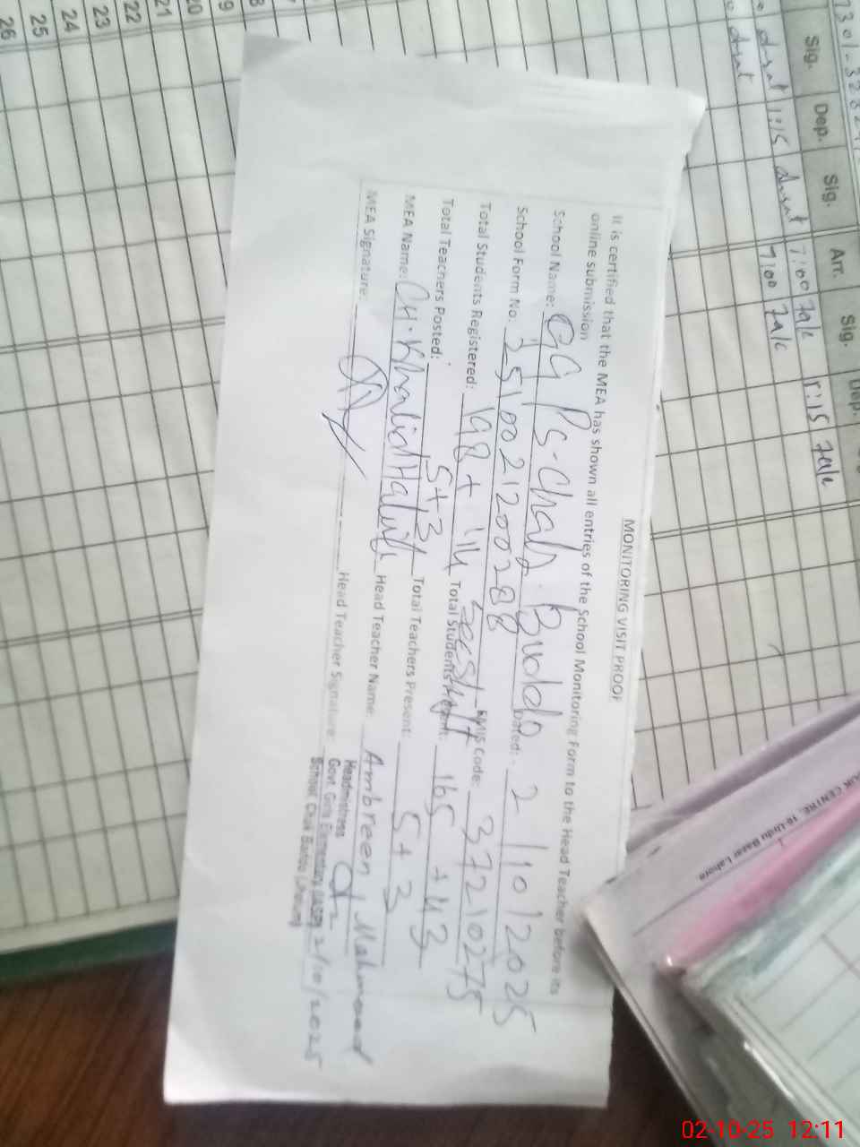 | EMIS Code: 37210275 | Name of School: GGPS CHAK BUDDO | |||