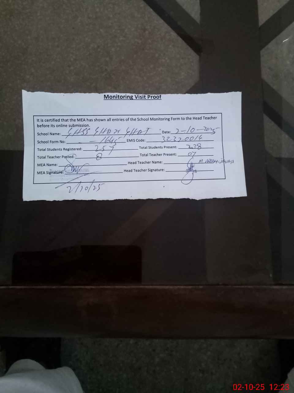 | EMIS Code: 32320014 | Name of School: GHSS GHAZI GHAT | |||