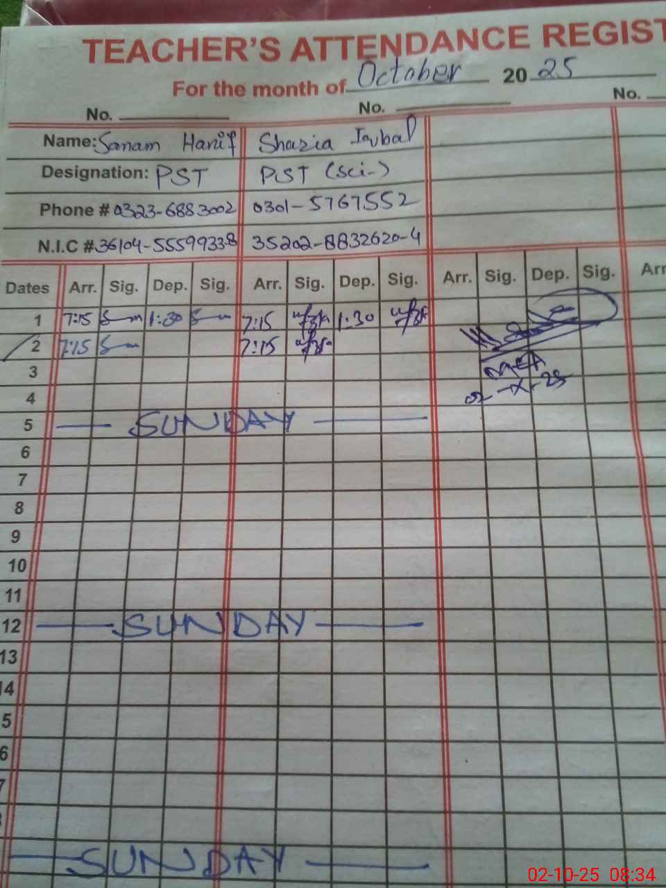 | Name: SH**** IQ**** Designation: (School Headmaster's/Headmistress's) PST Phone/Cell Number: 03**** |