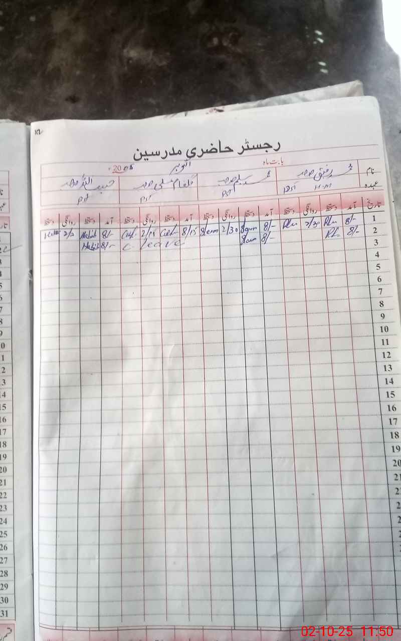 | CNIC | Full Name | Designation | R/C | Absence During Last Calender Month |