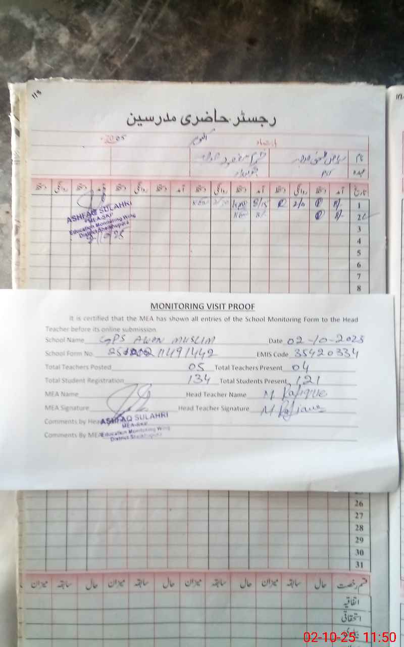 | Attendance Register | Head Teacher | MEA with School | Visit Proof |