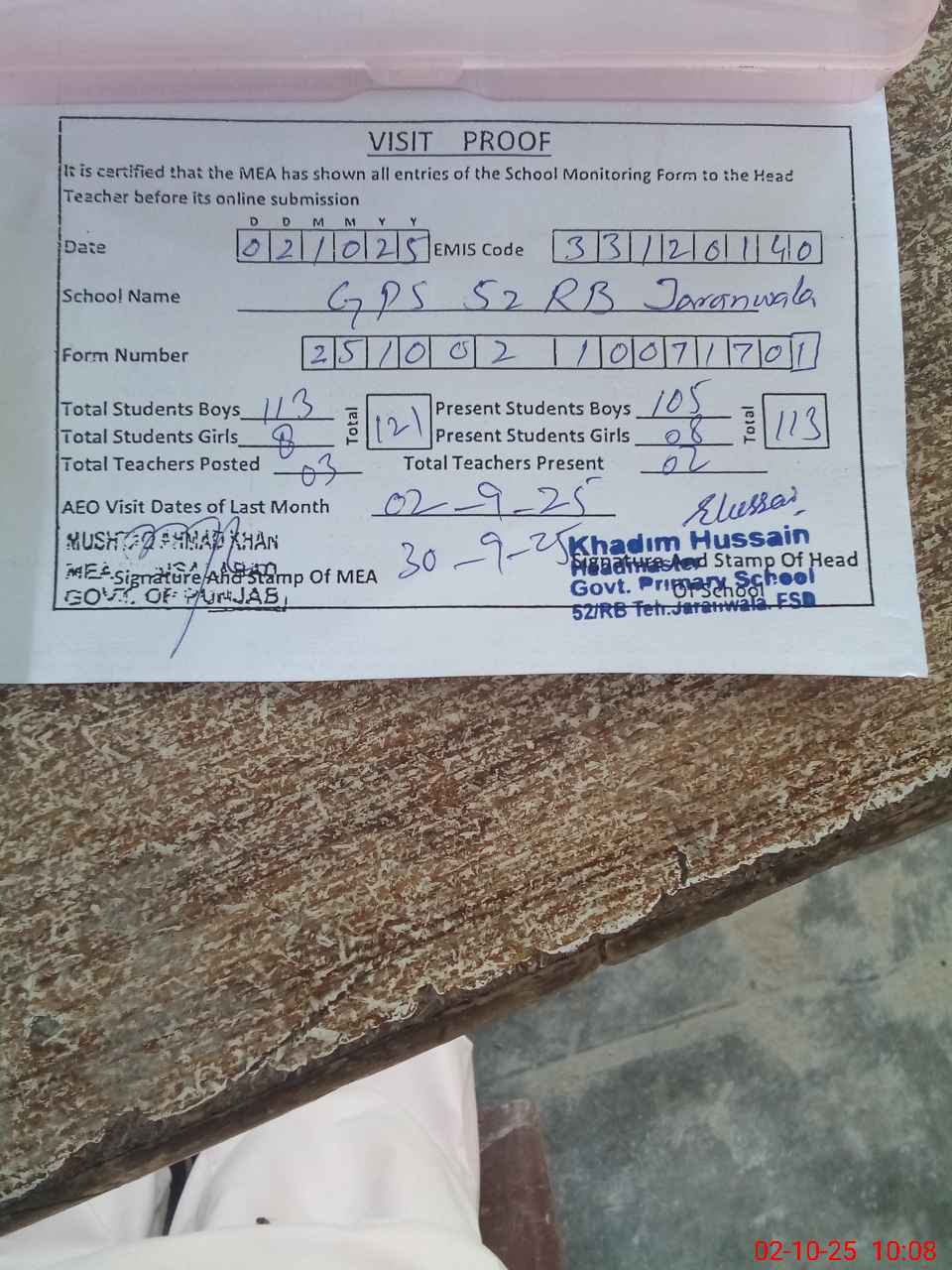 | EMIS Code: 33120140 | Name of School: GPS 52 RB | |||