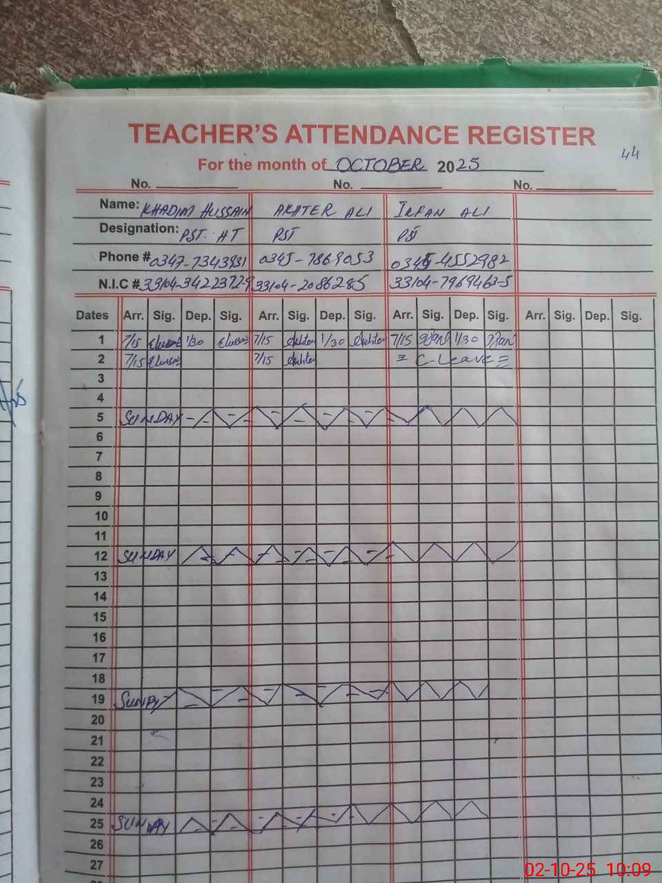 | Name: KH**** HU**** Designation: (School Headmaster's/Headmistress's) HEADMASTER Phone/Cell Number: 03**** |