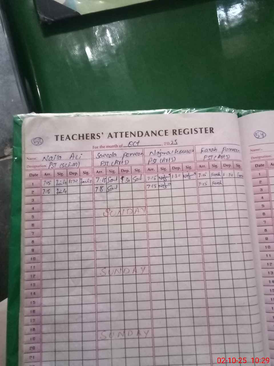 | CNIC | Full Name | Designation | R/C | Absence During Last Calender Month |