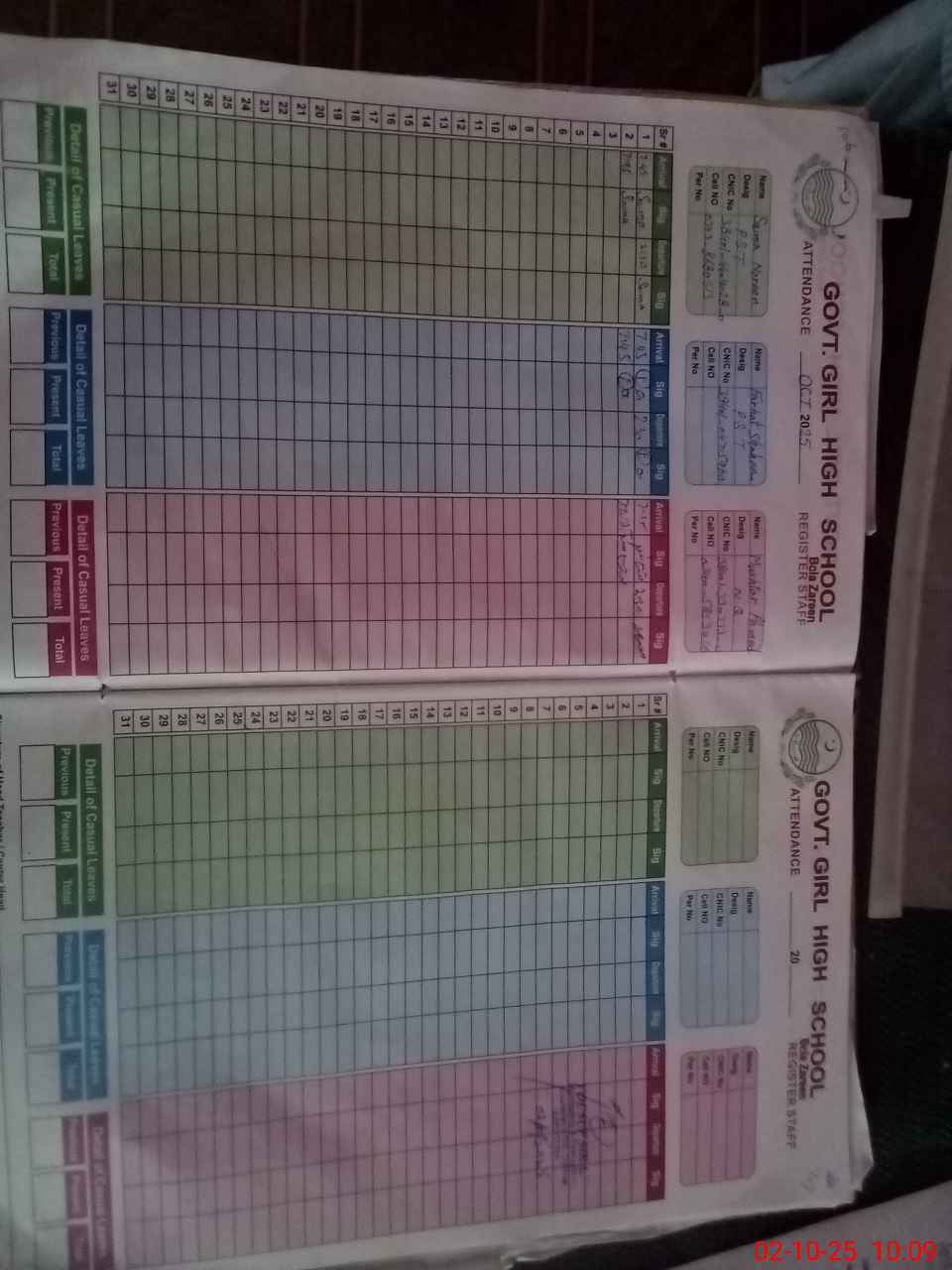 | CNIC | Full Name | Designation | R/C | Absence During Last Calender Month |