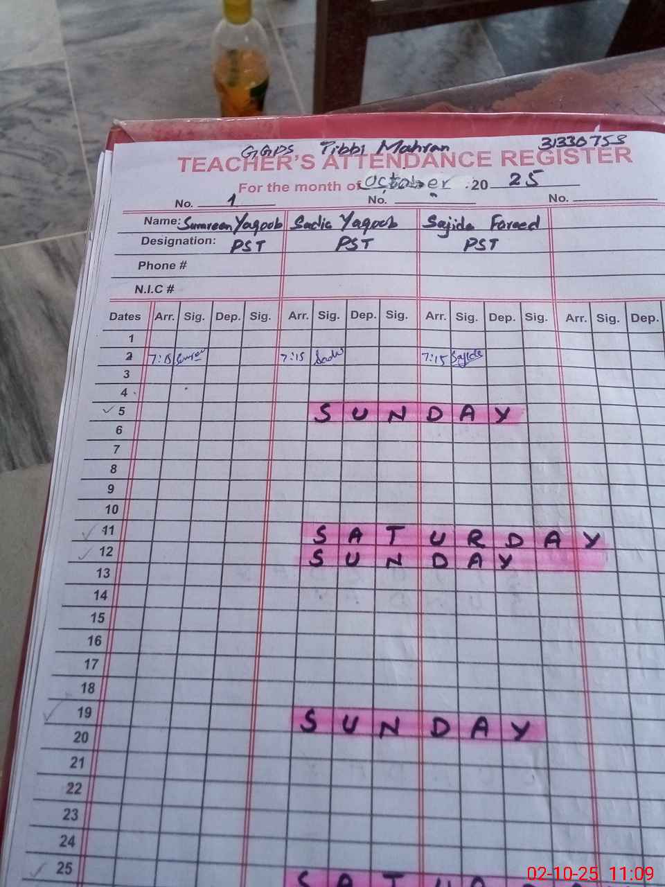 | Name: SA**** YA**** Designation: (School Headmaster's/Headmistress's) PST Phone/Cell Number: 03**** |