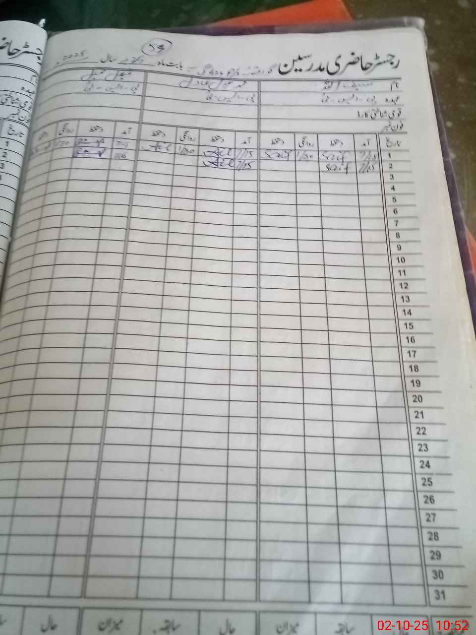 | CNIC | Full Name | Designation | R/C | Absence During Last Calender Month |