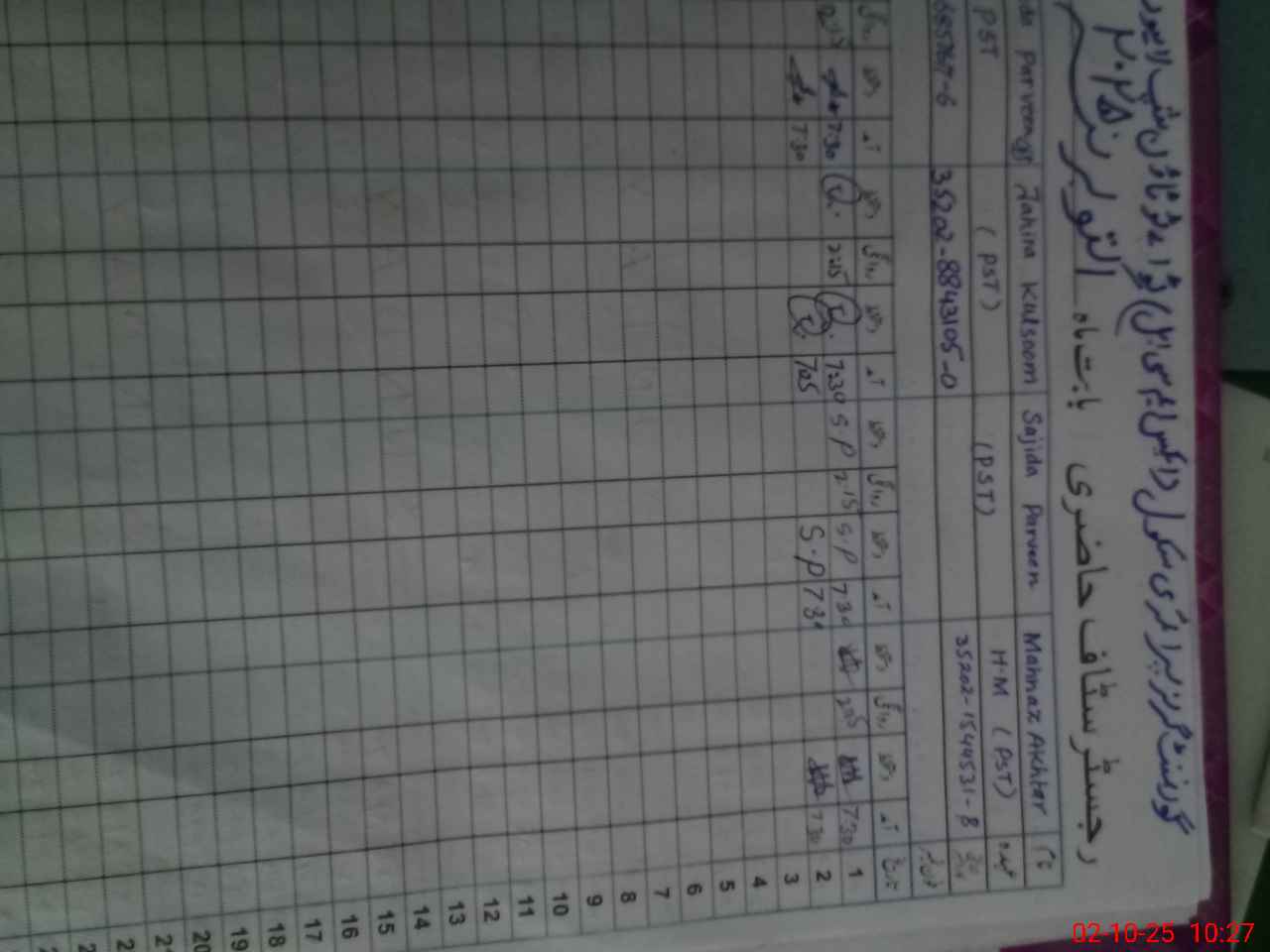 | CNIC | Full Name | Designation | R/C | Absence During Last Calender Month |