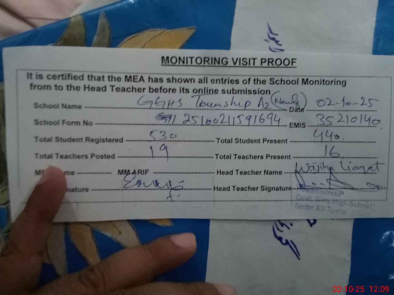 | EMIS Code: 35210140 | Name of School: GGHS TOWNSHIP A-2 (Newly Upgraded) | |||