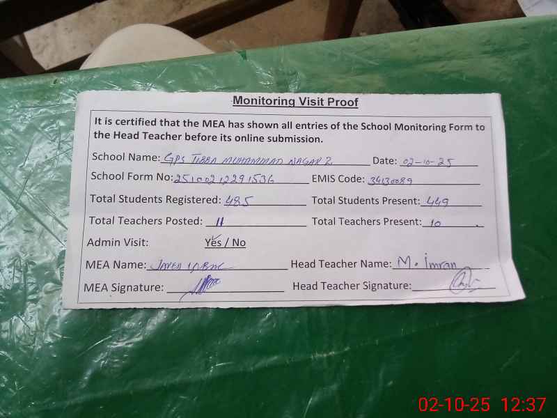 | EMIS Code: 34130089 | Name of School: GPS TIBBA MUHAMMAD NAGAR NO.2 | |||