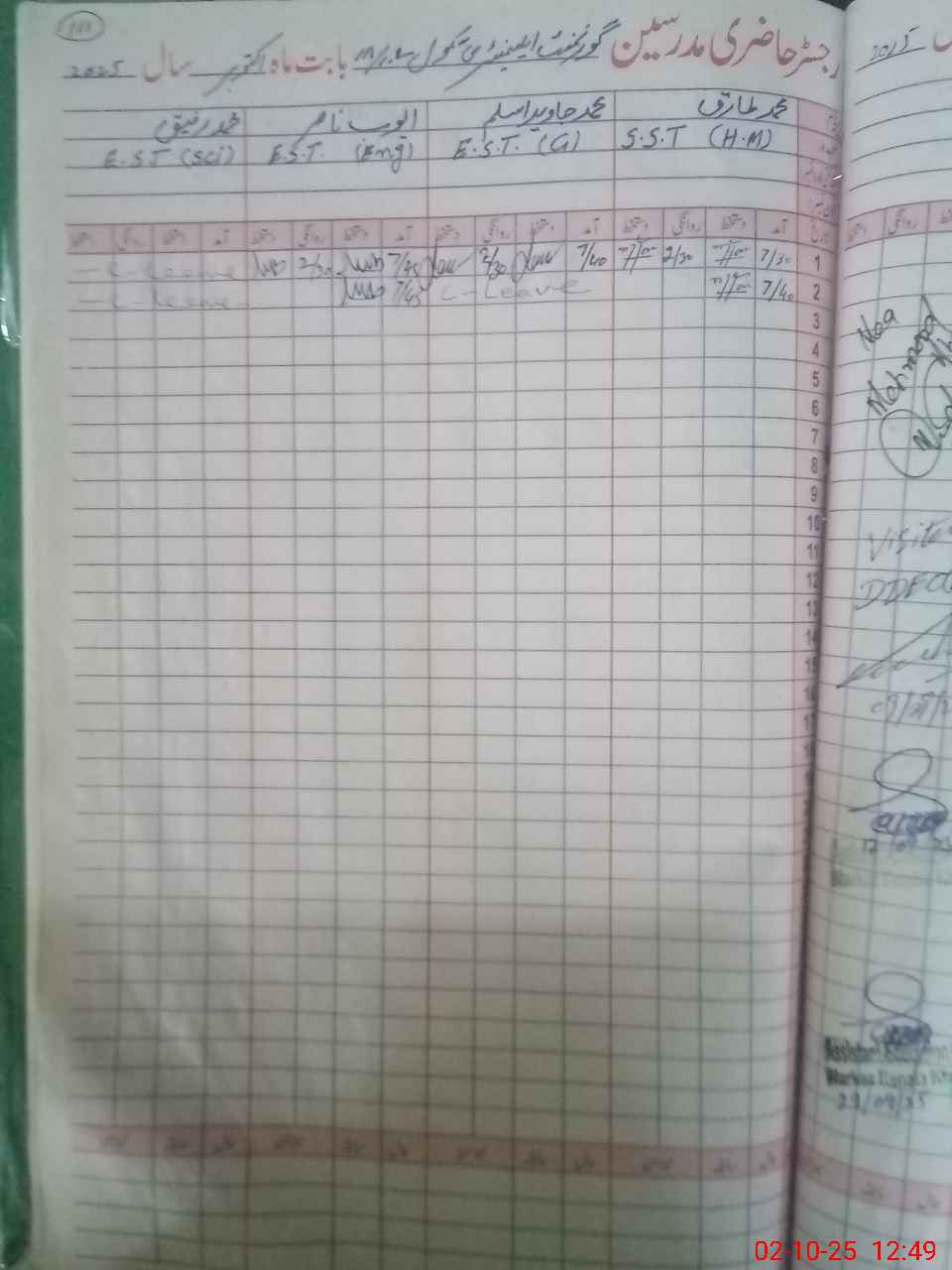 | Name: Mu**** Ta**** Designation: (School Headmaster's/Headmistress's) S.S.T.(Arts) Phone/Cell Number: 03**** |