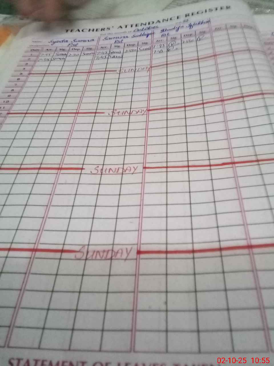 | 33**** | Sh**** Ko**** | SST | Regular | 0 | 0 | 0 | 0 | 0 | 0 | 0 | 0 | 0 | Absent (Un-Authorized) |