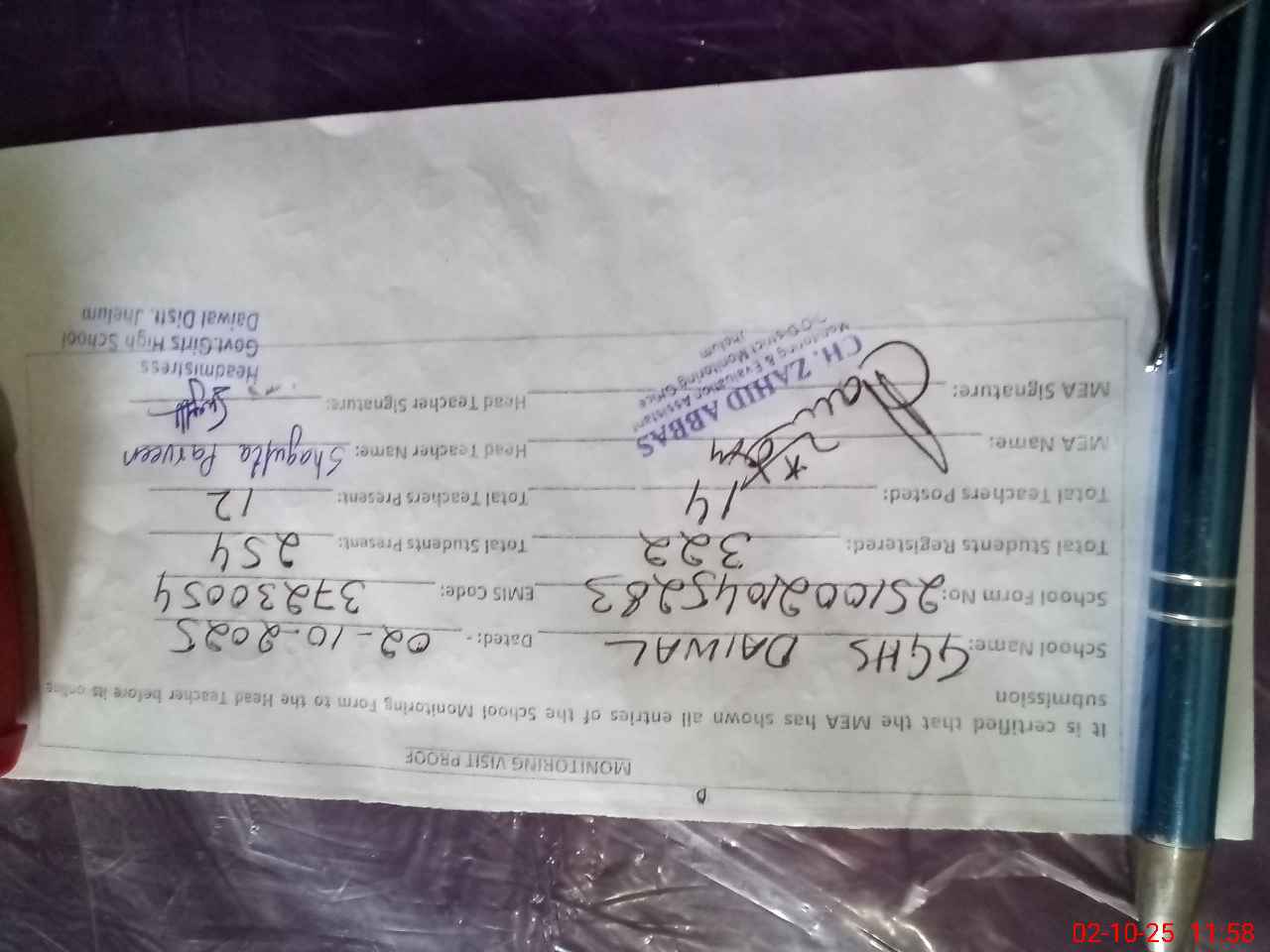 | Certified that this School was Inspected by the Undersigned MEA/DMO Today and the Information Stated Above is as Per Record. | |||||