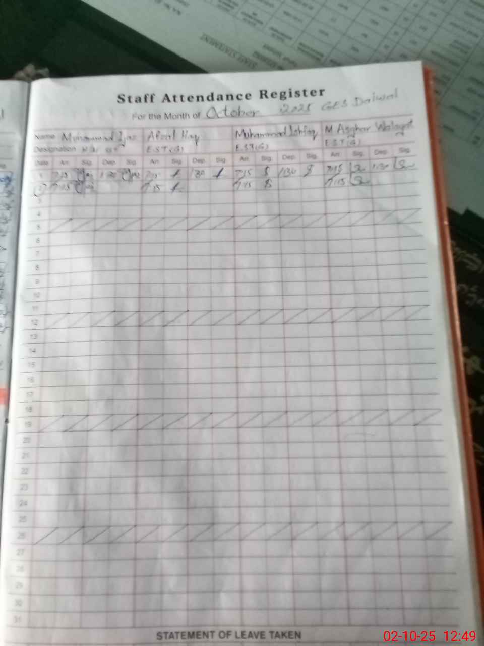 | 37**** | Na**** Sh**** | PST | Regular | 0 | 2 | 0 | 0 | 0 | 0 | 0 | 0 | 0 | Exam Duty |
