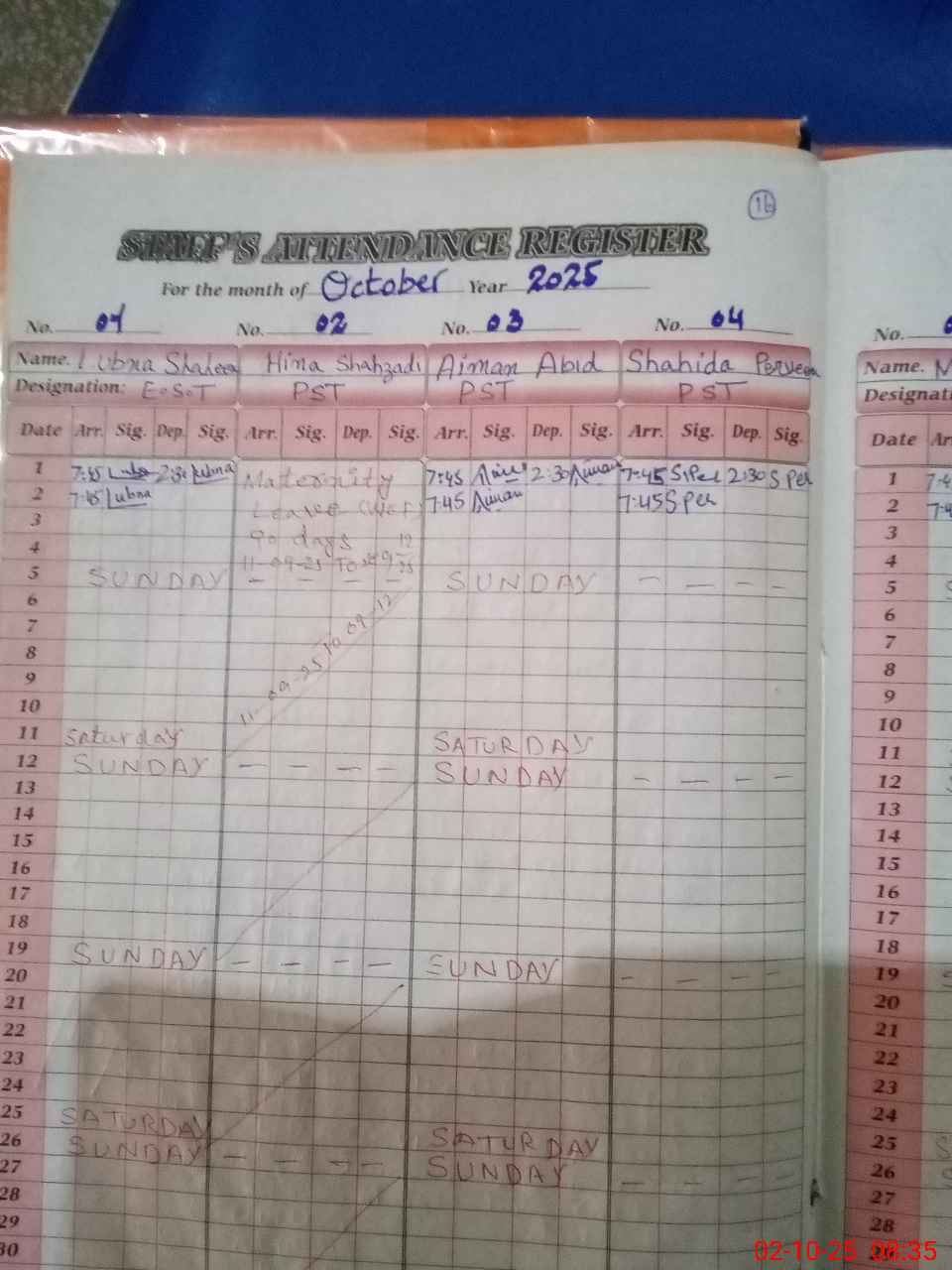 | District: LAHORE | Tehsil: CANTT | Markaz: BARKI-FEMALE | Level: Middle | |
