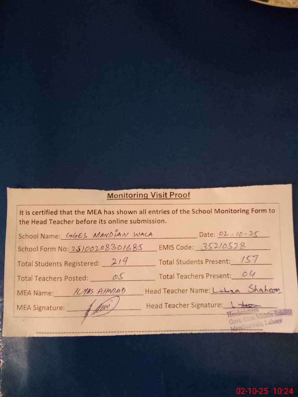| EMIS Code: 35210528 | Name of School: GGES MANDIAN WALA | |||