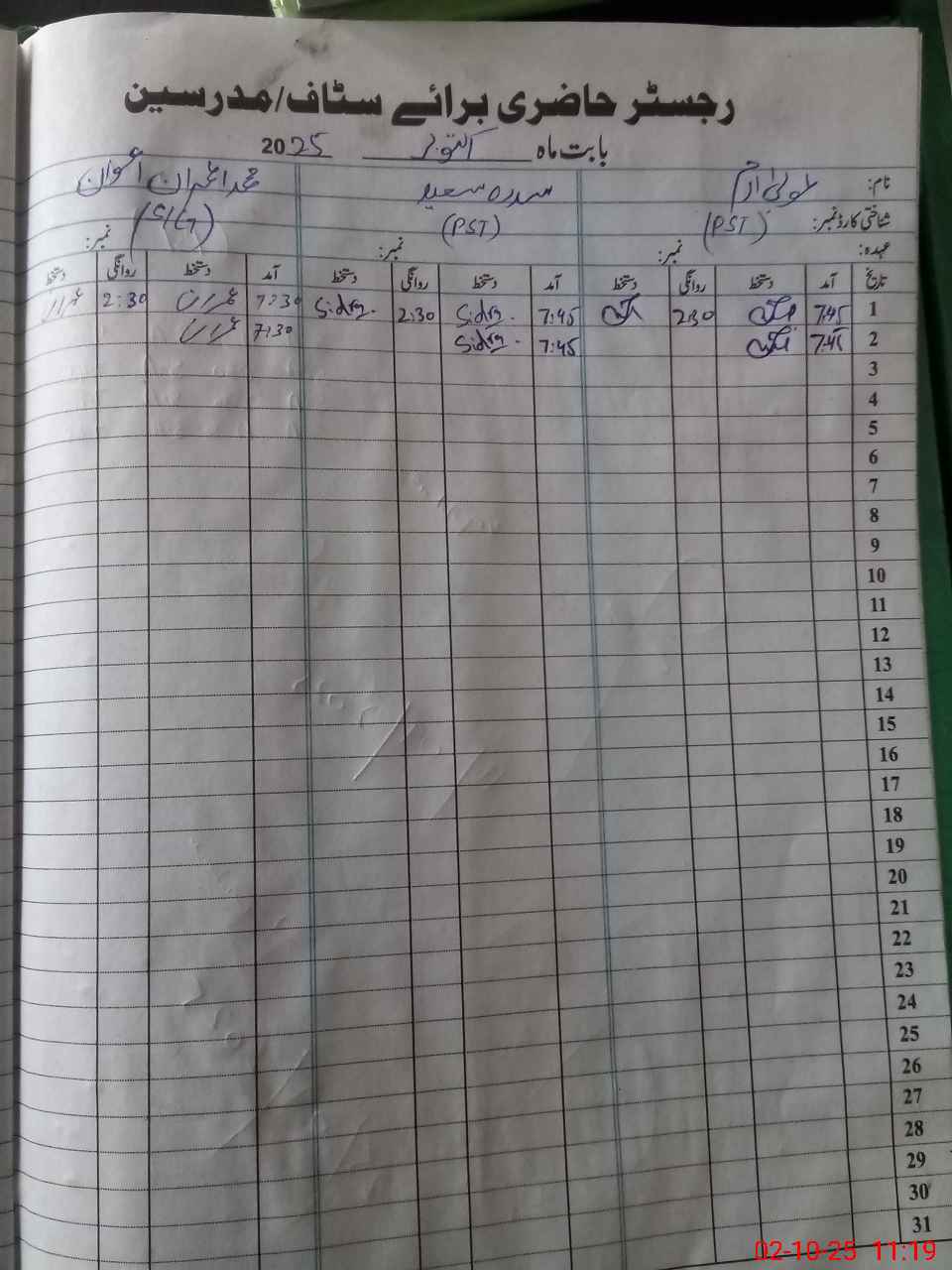 | Remarks (Use Separate Page if Required): Teacher Rabia Tasssaewer PST has passed away on 25 December 2023 but still showing on MEA tab NSB and FTF bank accounts are domant and NSB record register is not maintained for last three months Paint work and White Wash is required | |||||