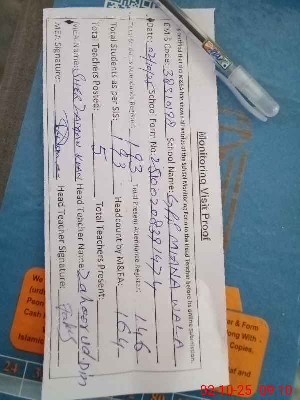 | EMIS Code: 38310198 | Name of School: GPS MIANA WALA | |||