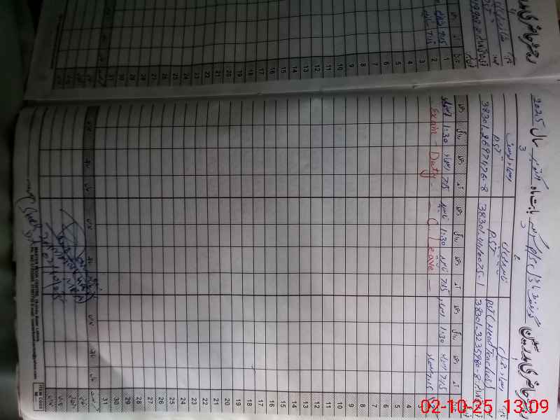 | CNIC | Full Name | Designation | R/C | Absence During Last Calender Month |