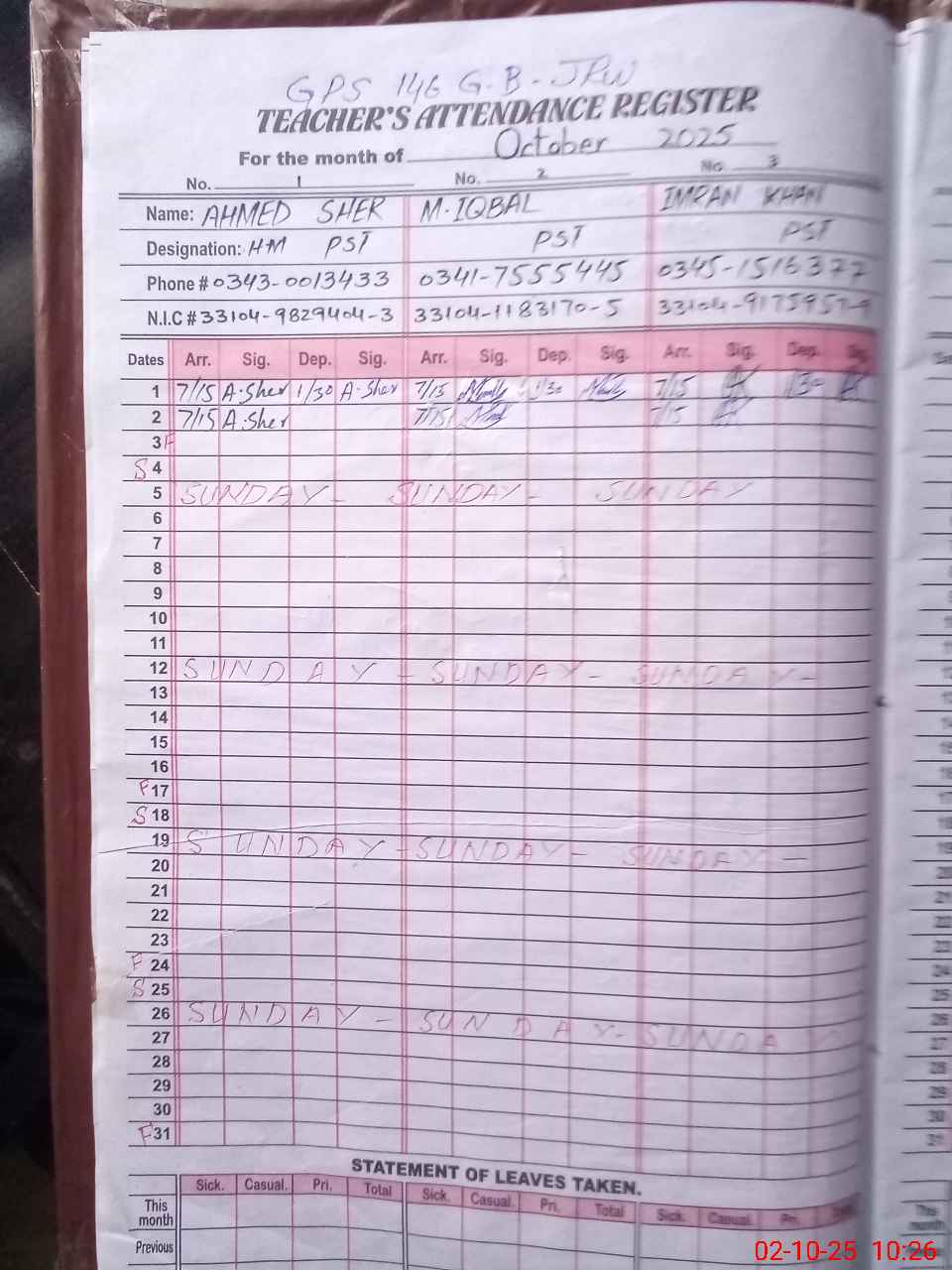 | Name: Ah**** Sh**** Designation: (School Headmaster's/Headmistress's) PST Phone/Cell Number: 03**** |