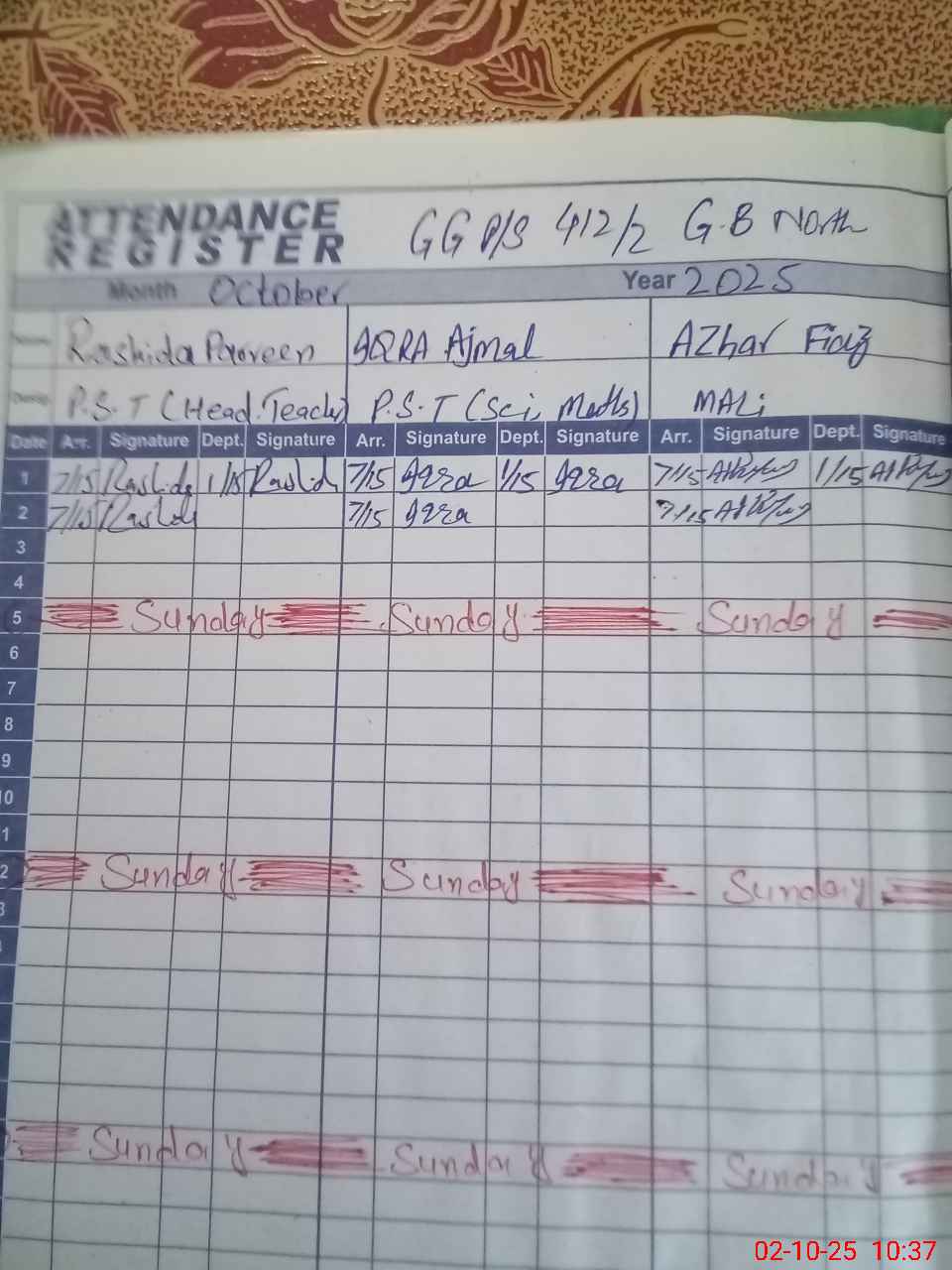 | Name: RA**** PE**** Designation: (School Headmaster's/Headmistress's) PST Phone/Cell Number: 03**** |