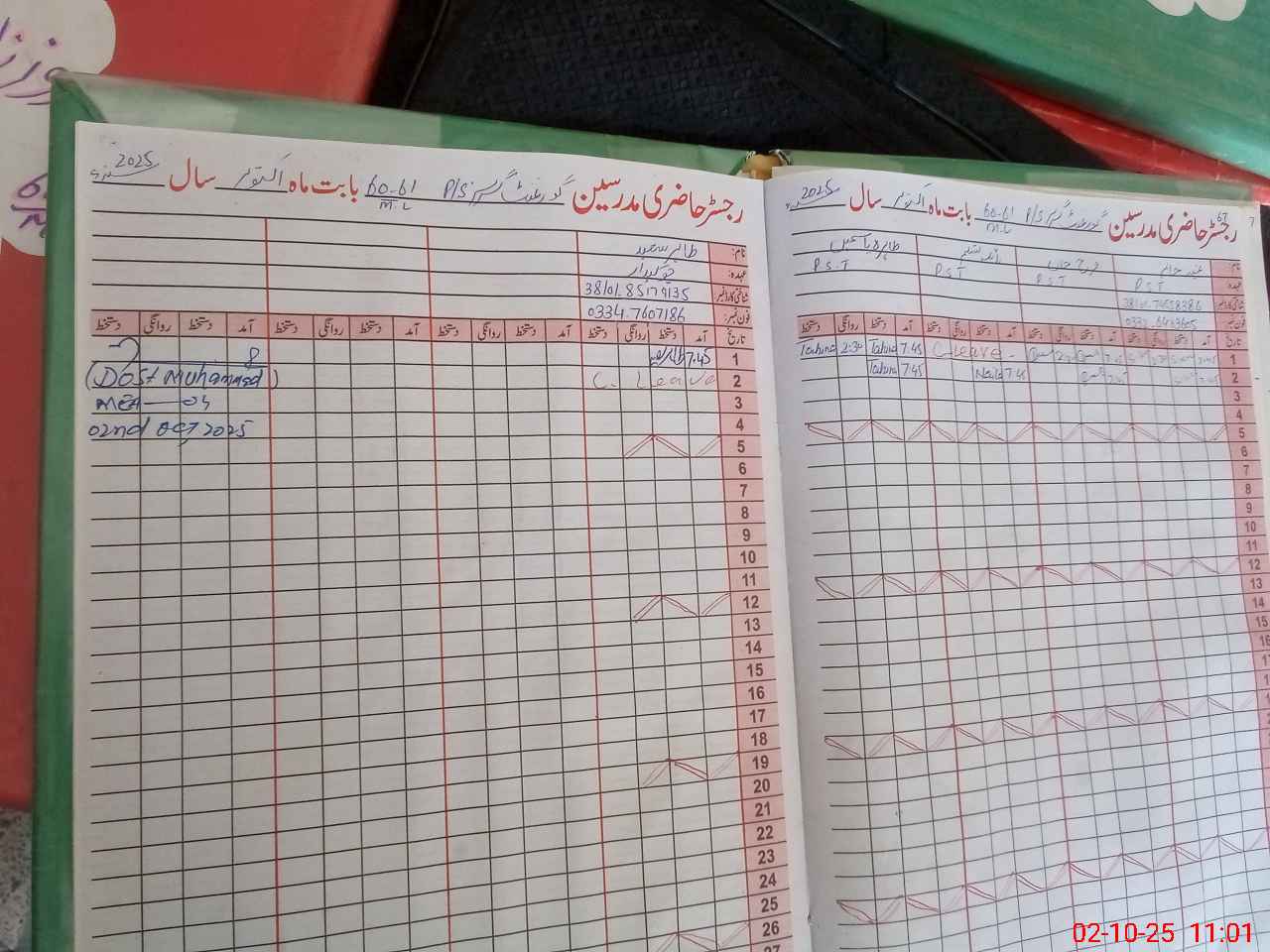 | Name: SA**** Designation: (School Headmaster's/Headmistress's) PTC/JV Phone/Cell Number: 03**** |