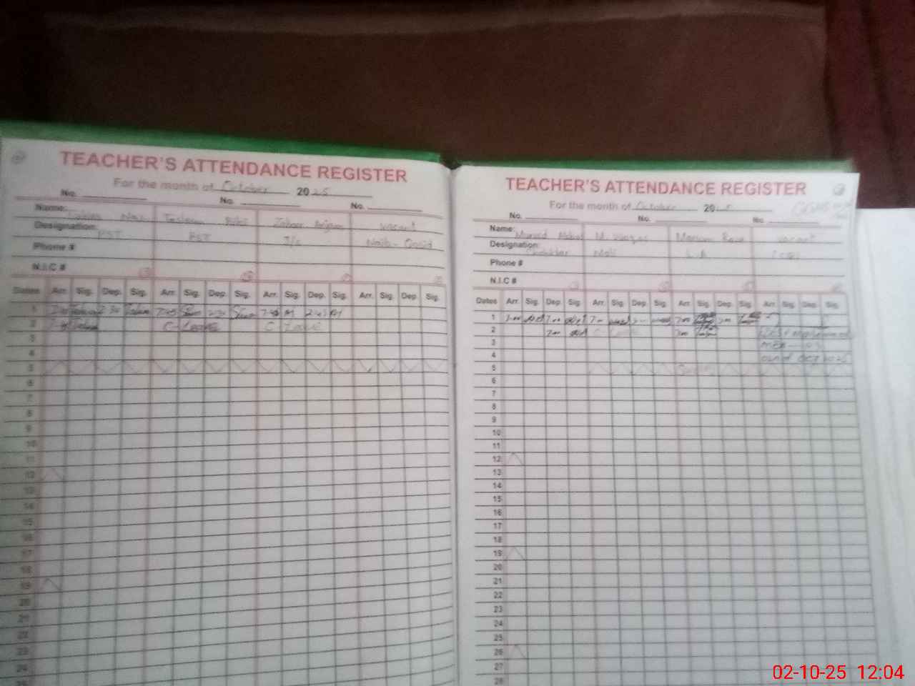 | CNIC | Full Name | Designation | R/C | Absence During Last Calender Month |