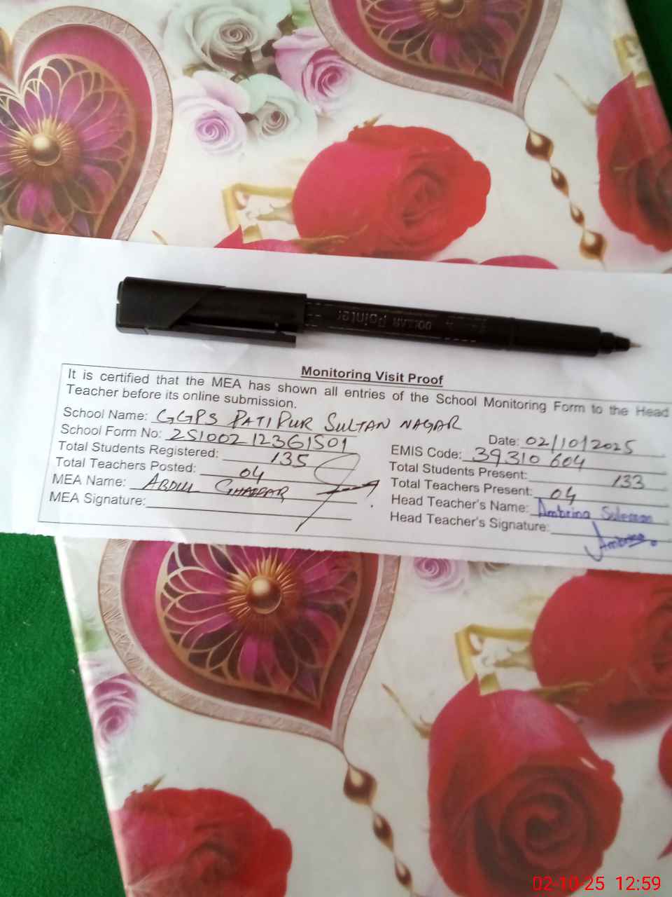 | EMIS Code: 39310604 | Name of School: GGPS PATI PUR (SULTAN NAGAR) | |||