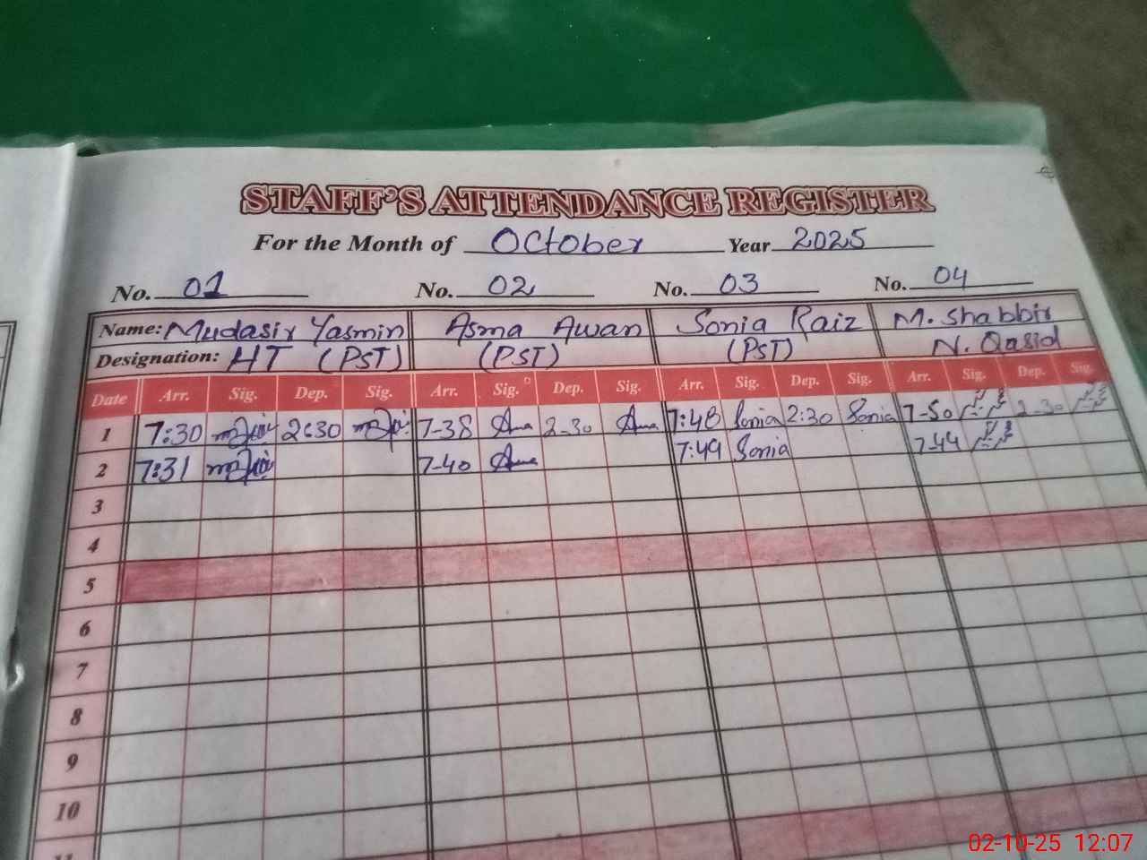 | Remarks (Use Separate Page if Required): 1 No visit of AEO in the month of September 2025 2 Class three no books received 3 School building needs white wash | |||||