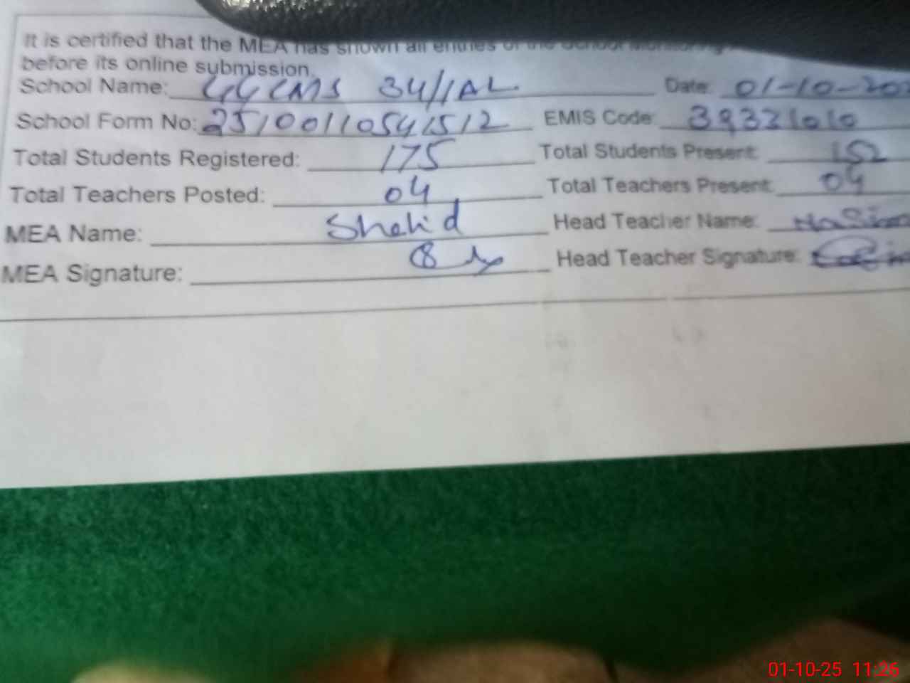 | Certified that this School was Inspected by the Undersigned MEA/DMO Today and the Information Stated Above is as Per Record. | |||||