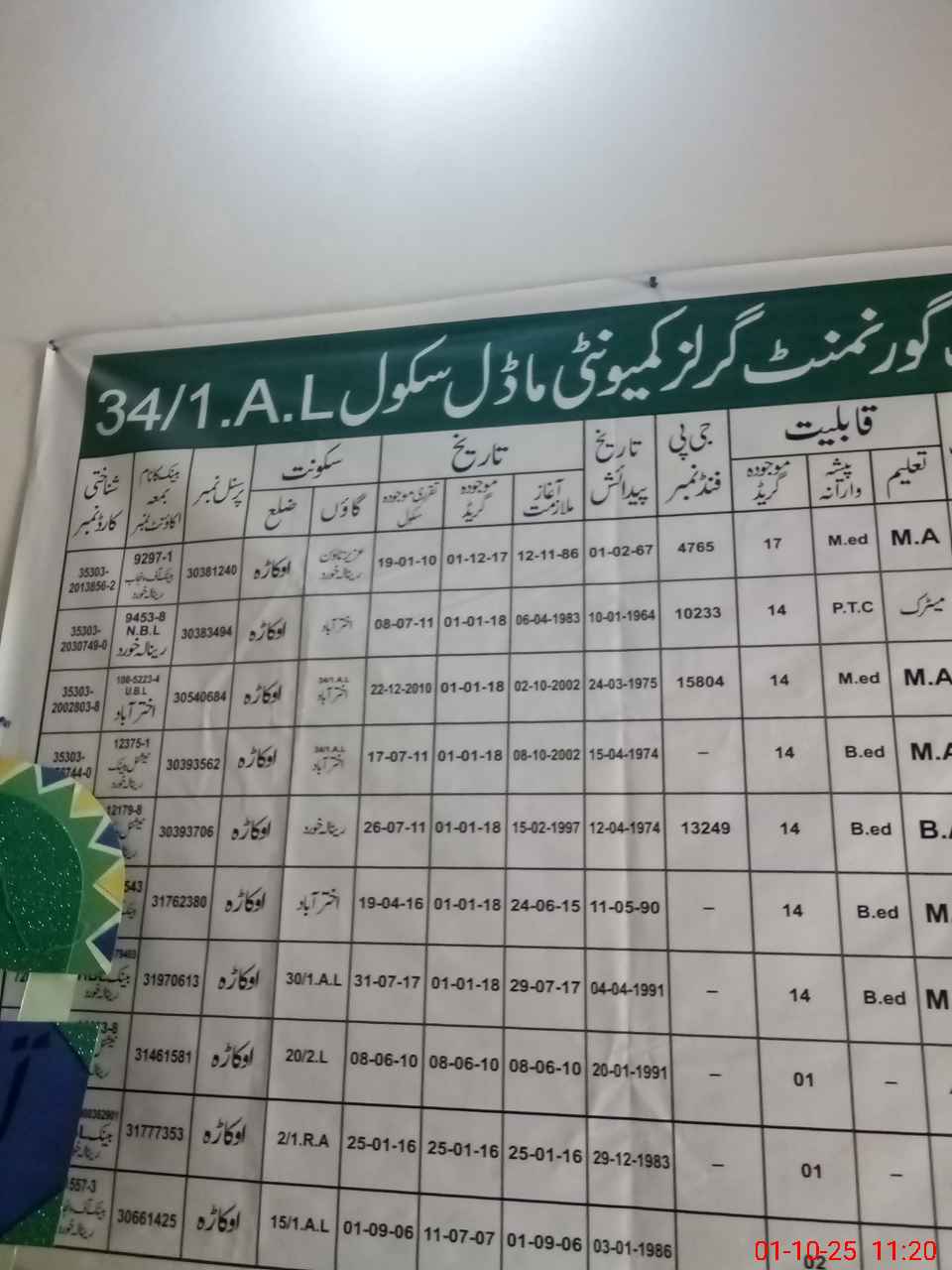 | District: OKARA | Tehsil: RENALA KHURD | Markaz: AKHTAR ABAD - FEMALE | Level: Primary | |