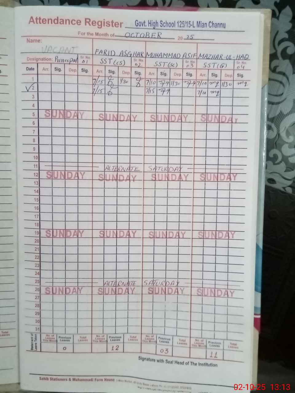 | Name: FA**** AS**** Designation: (School Headmaster's/Headmistress's) SST IT Phone/Cell Number: 03**** |