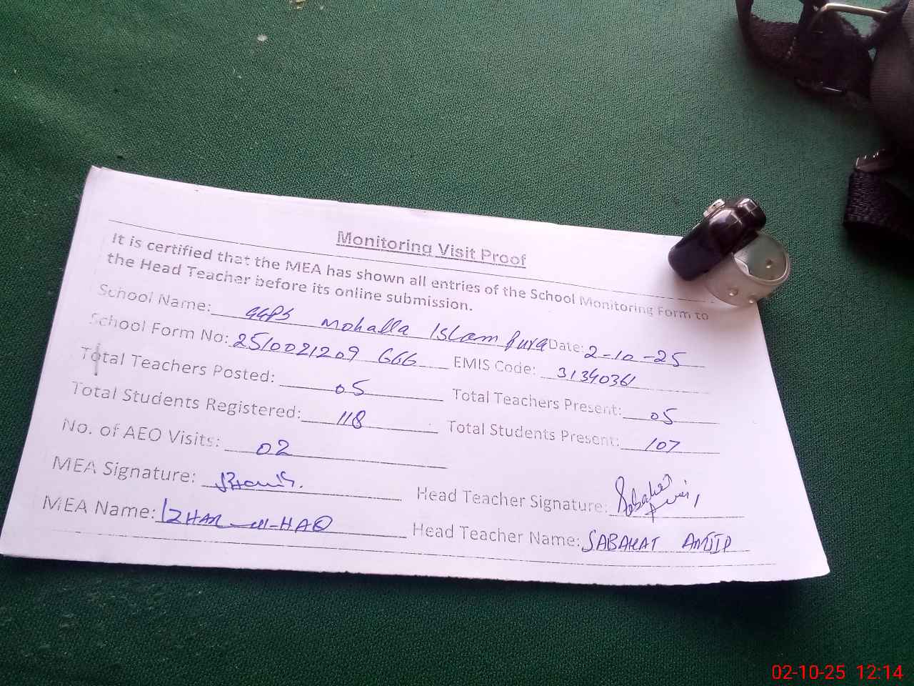 | EMIS Code: 31340361 | Name of School: GGPS MOHALLA ISLAM PURA | |||