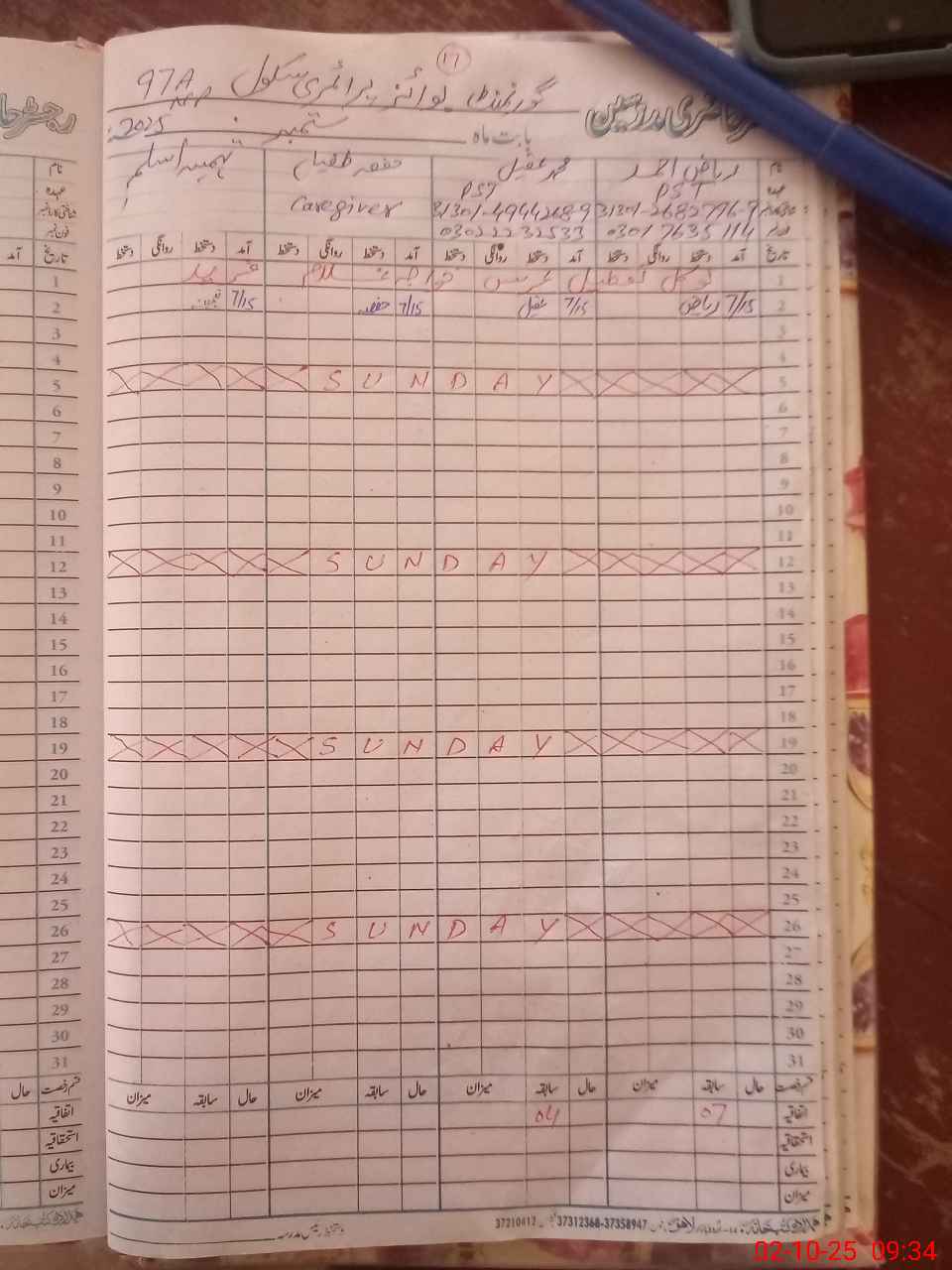 | CNIC | Full Name | Designation | R/C | Absence During Last Calender Month |