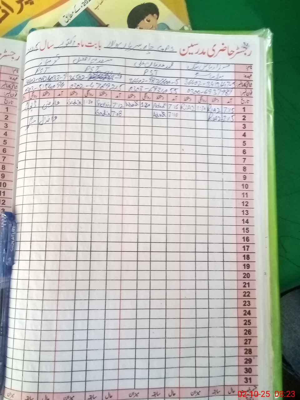 | Name: MI**** RI**** BA**** Designation: (School Headmaster's/Headmistress's) PST Phone/Cell Number: 03**** |