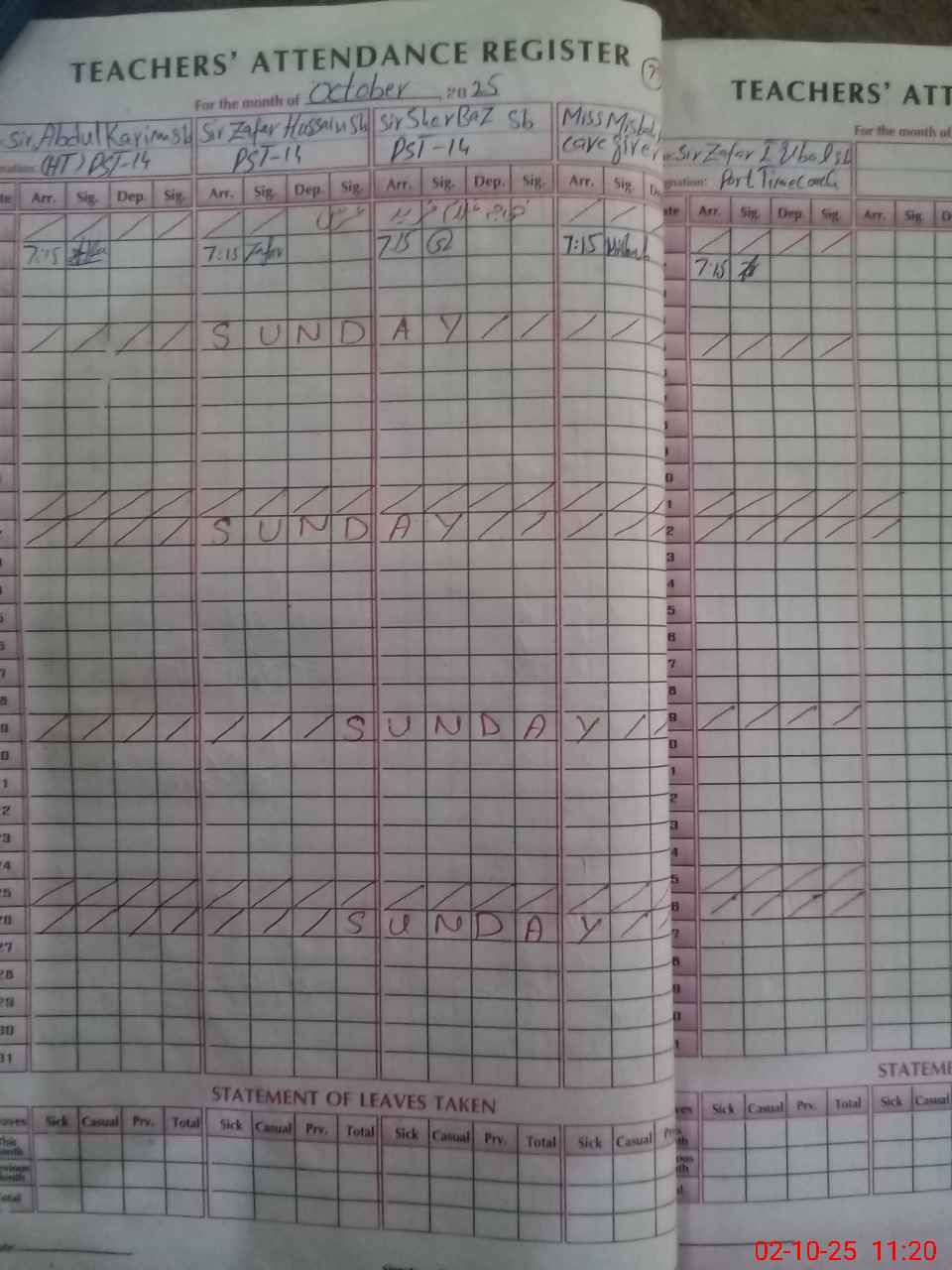 | Leave | Duty | Absent | Maternity | Medical | Ex- Pak |