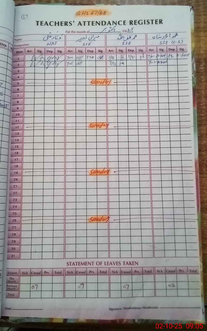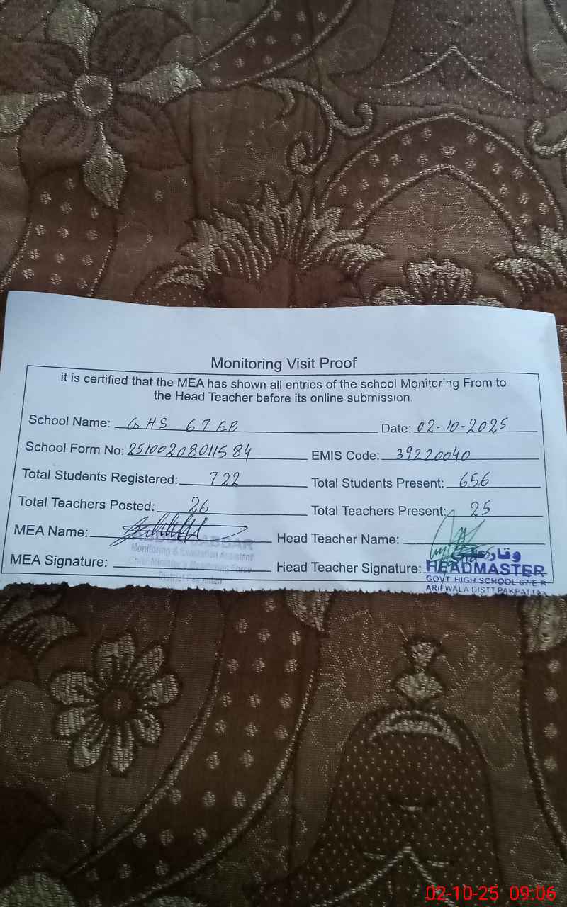 | EMIS Code: 39220040 | Name of School: GHS 67 EB | |||