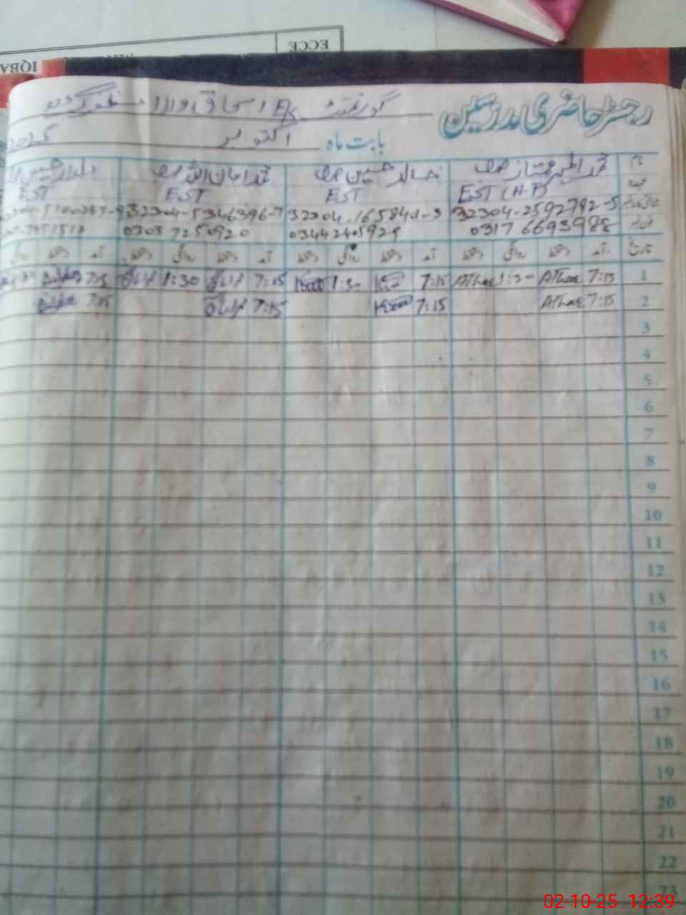 | Name: Mu**** At**** Mu**** Designation: (School Headmaster's/Headmistress's) EST Phone/Cell Number: 03**** |