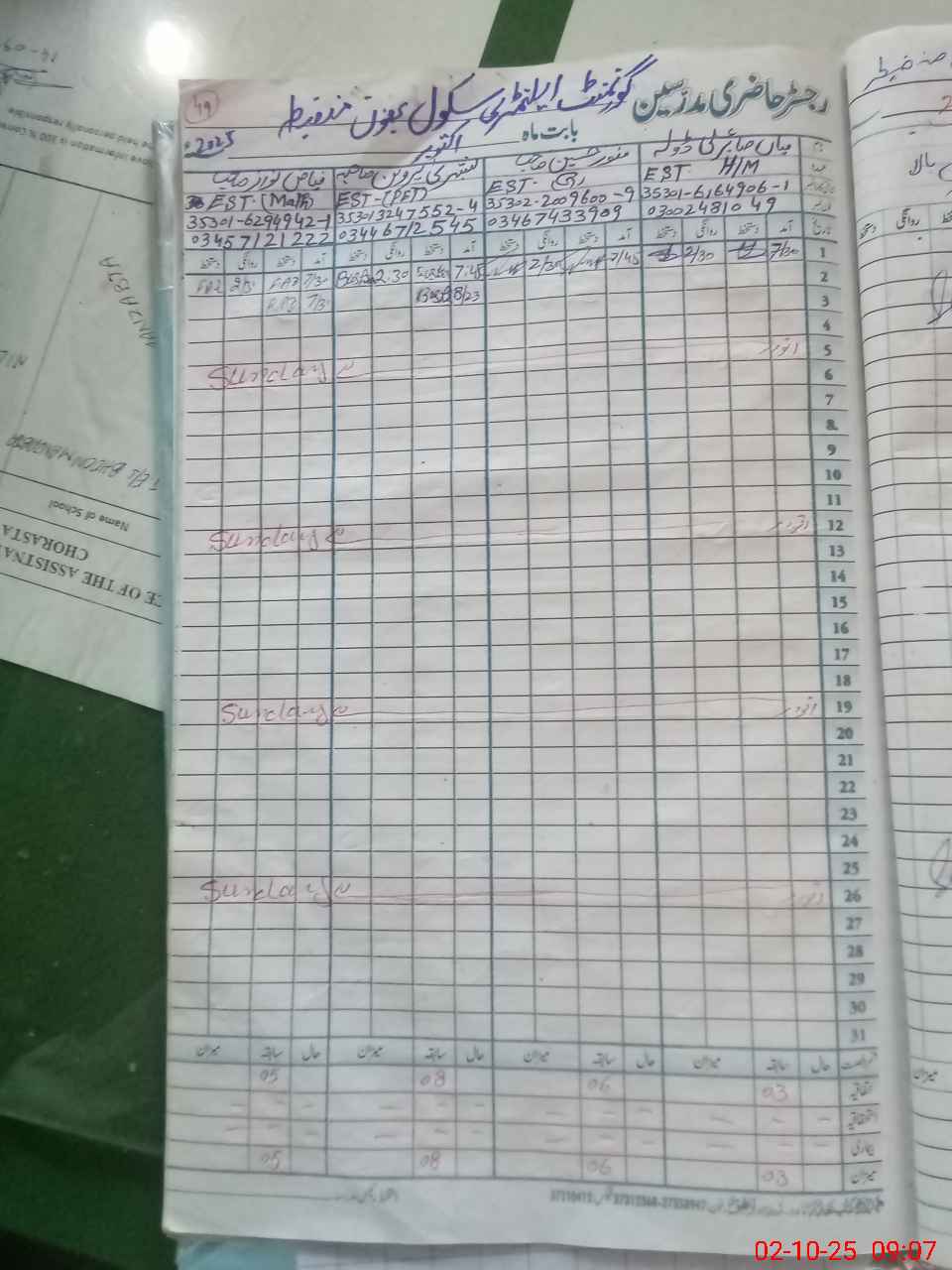 | Name: SA**** AL**** Designation: (School Headmaster's/Headmistress's) Est General Phone/Cell Number: 03**** |