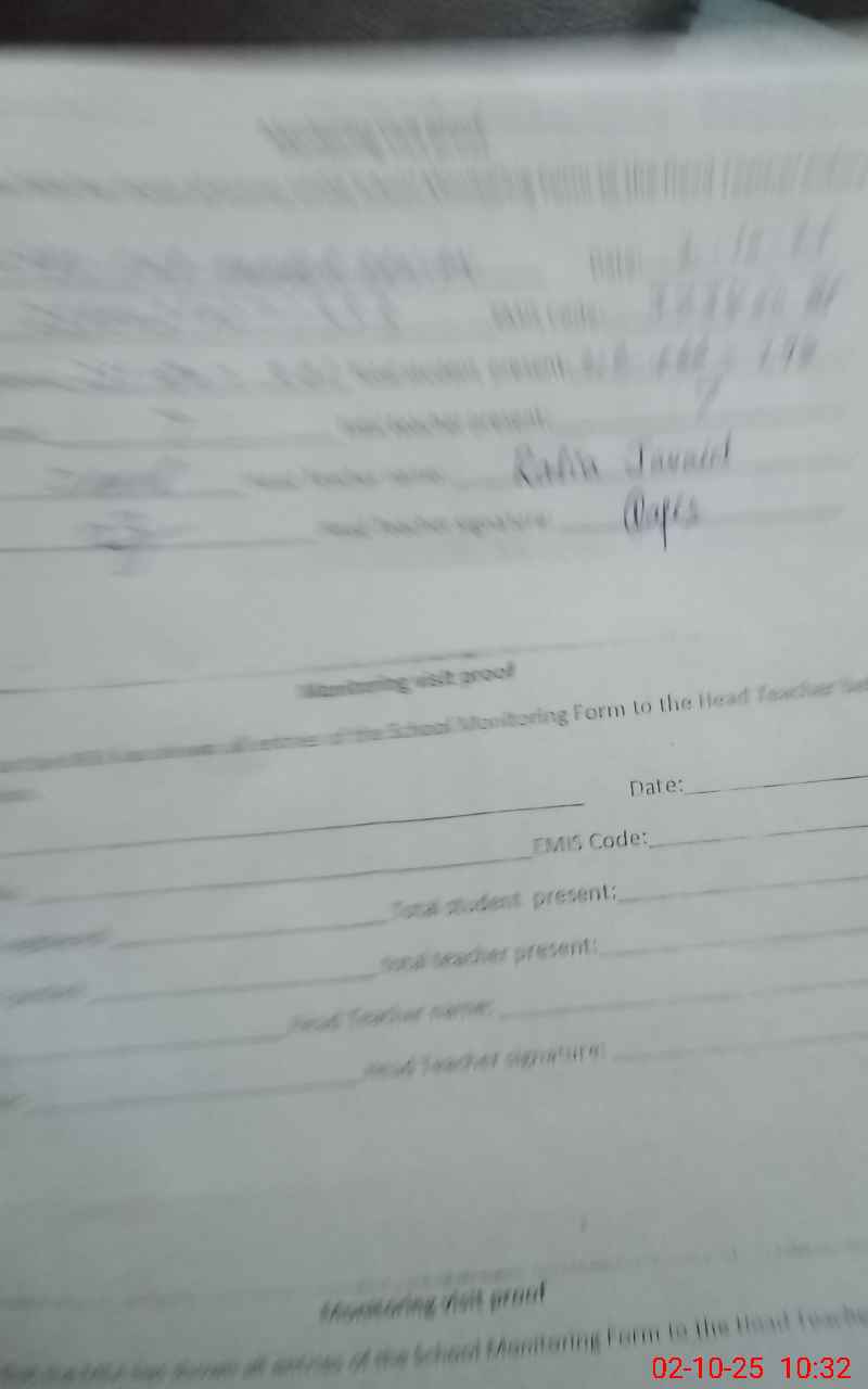 | Monitoring Date: 02-10-2025 | Start Time: 02-10-2025 10:18 AM | End Time: 02-10-2025 10:34 AM | Name of MEA: Za**** Ah**** | |